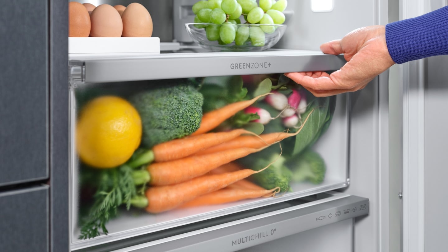 1. Jämfört med 500 ColdSense-kylskåp. Baserat på externa tester på hållbarheten hos mjukost och kokt skinka förvarad på kylskåpets hyllor. Resultaten kan variera beroende på typ av mat. Uppskattad minskning av matsvinnet endast baserat på produktens prestanda och inte med hänsyn till användarbeteende.