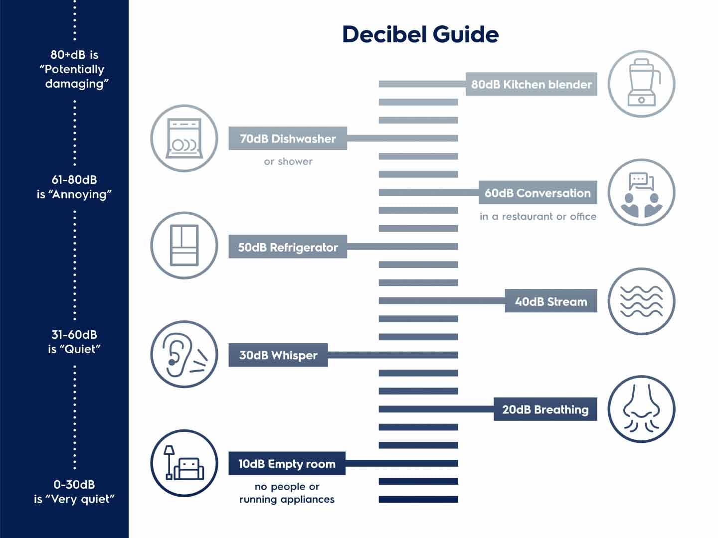 För att kunna njuta av matlagningen utan störande ljud ska du välja en fläkt med lågt decibelvärde (dB). Hur högt köksfläkten låter beror på vald utsugskraft och ligger på mellan 40 och 70 dB.