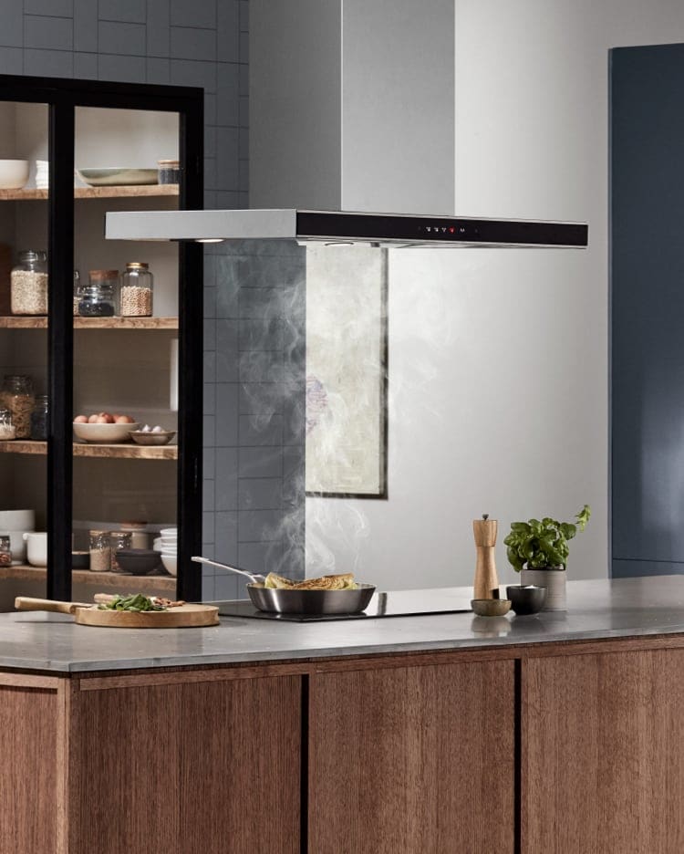 För total designfrihet i köket. Den här induktionshällen behöver ingen traditionell köksfläkt eftersom den är inbyggd i hällen.