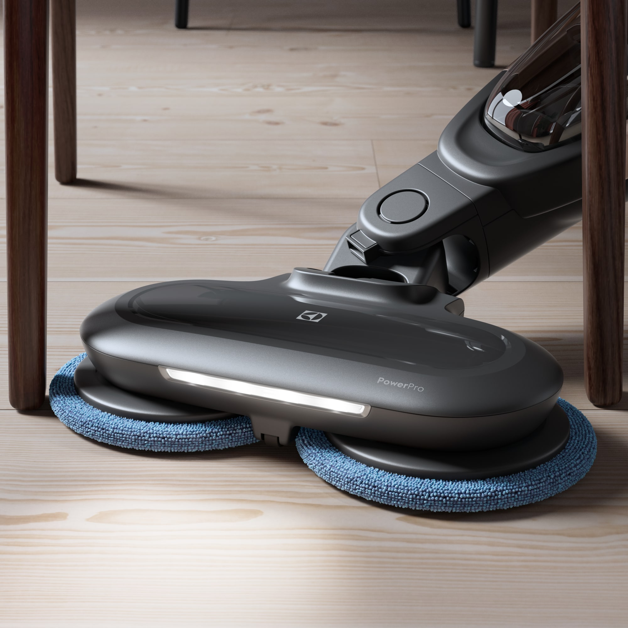 Electrolux PowerPro moppmunstycke med LED-lampor för 600 Cordless 2-in-1. Utrustat med 2st roterande rengöringsdynor som tar bort smuts från hårda ytor. Standarddynor ingår, utformade för grundlig rengöring och tillverkade av tåligt fibermaterial. Kan tvättas i tvättmaskin och återanvändas.