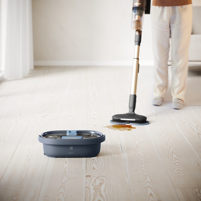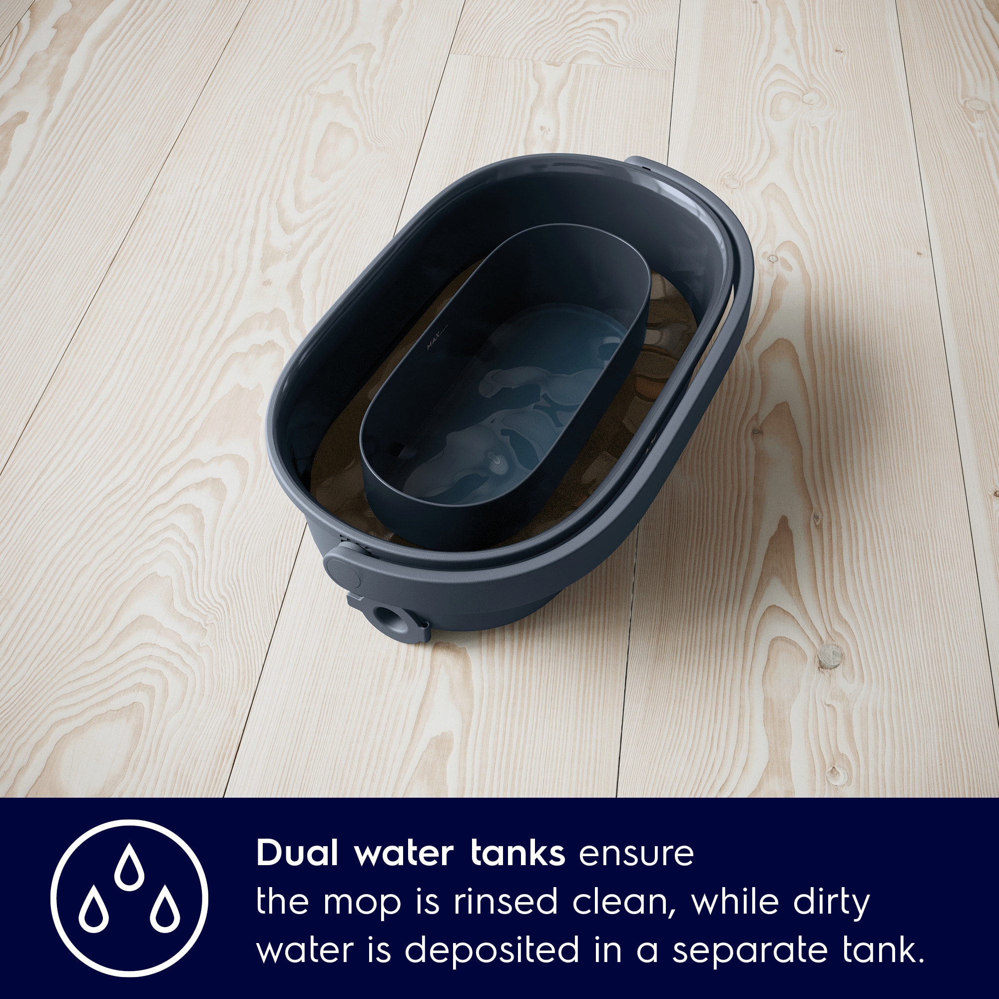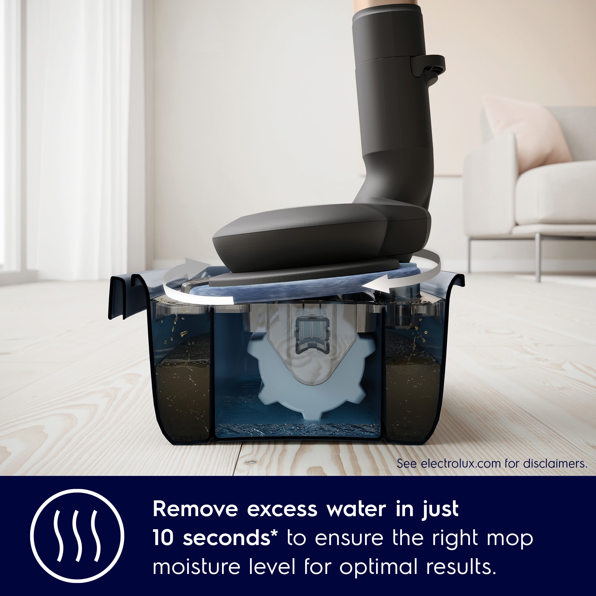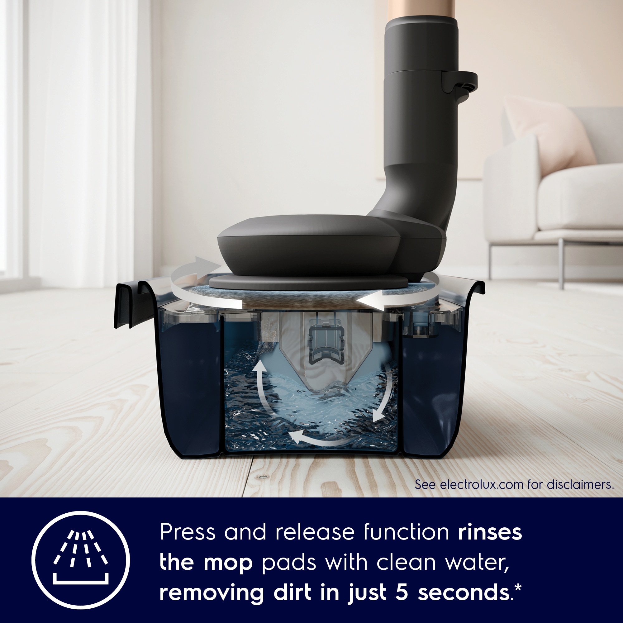 *Rekommenderad sköljningstid är fem sekunder för att effektivt ta bort hushållssmuts och skräp från moppdynorna. Baserat på Electrolux interna tester.