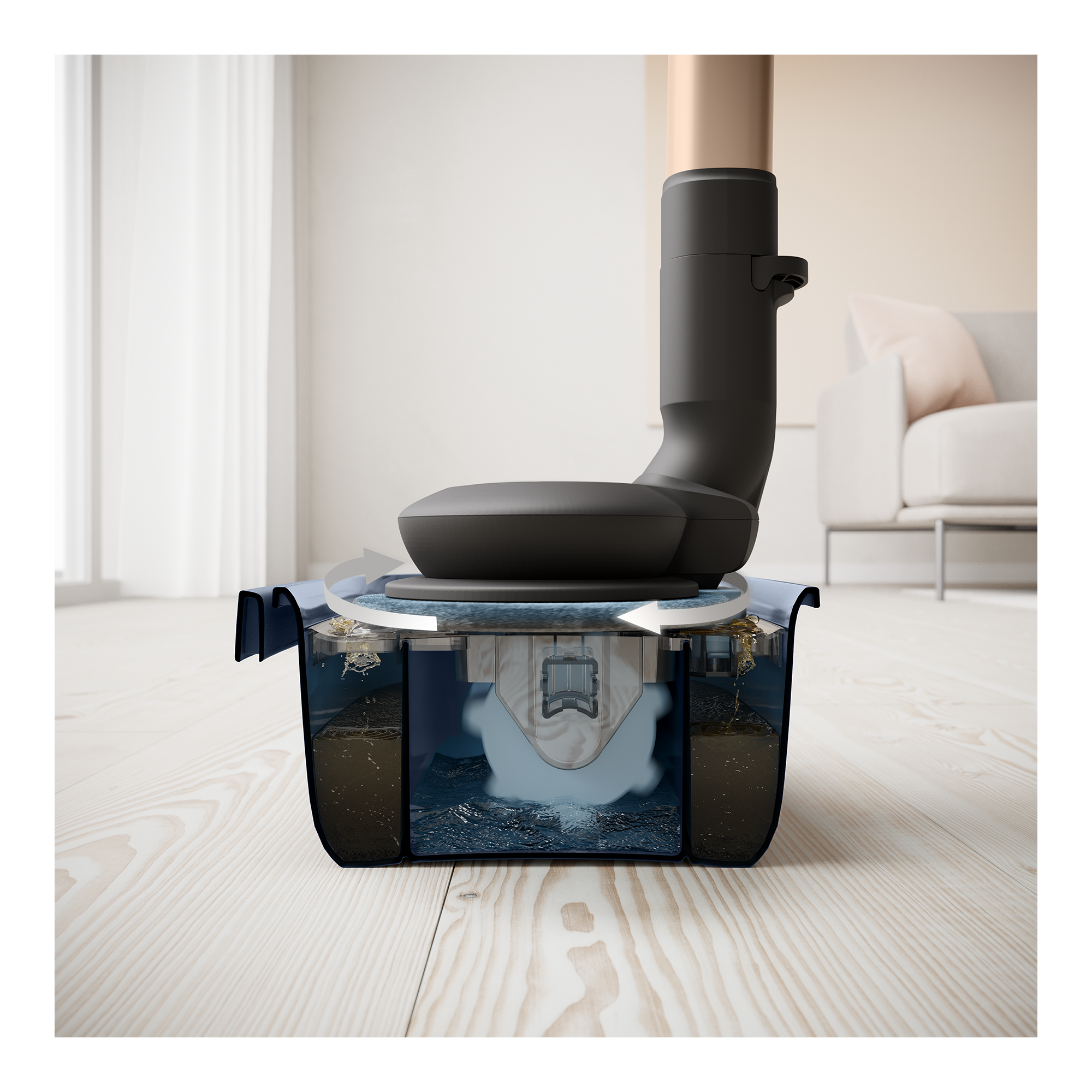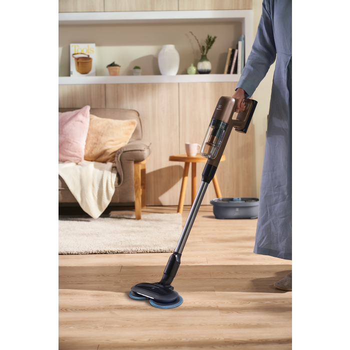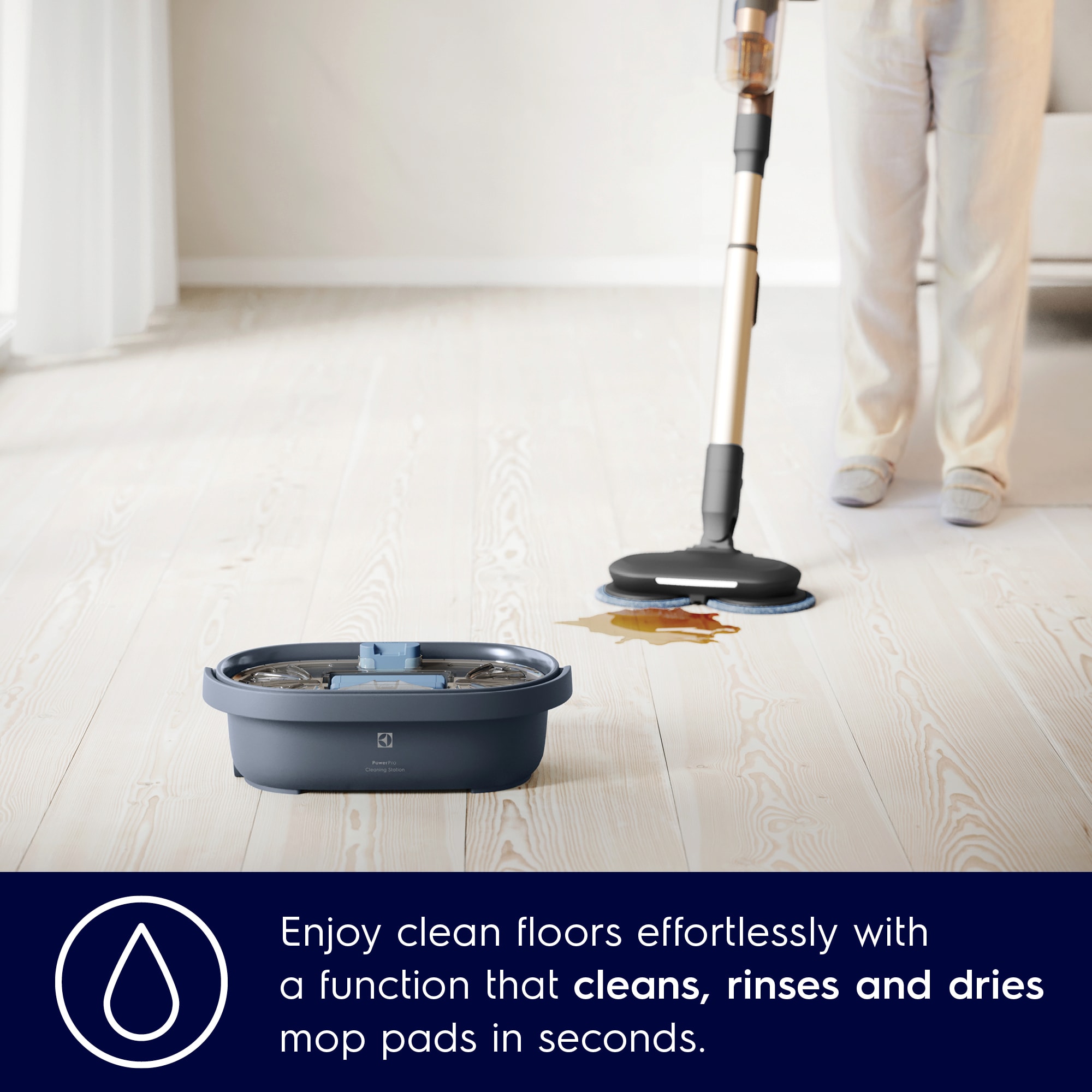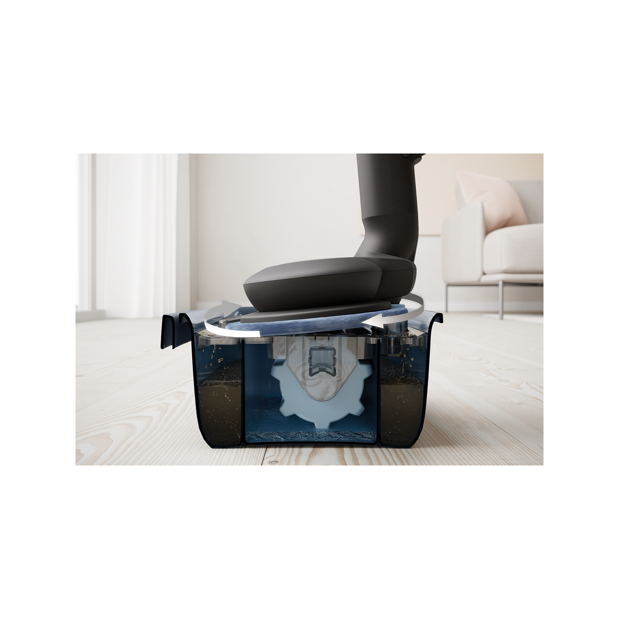 *Rekommenderad sköljningstid är fem sekunder för att effektivt ta bort hushållssmuts och skräp från moppdynorna. Baserat på Electrolux interna tester.