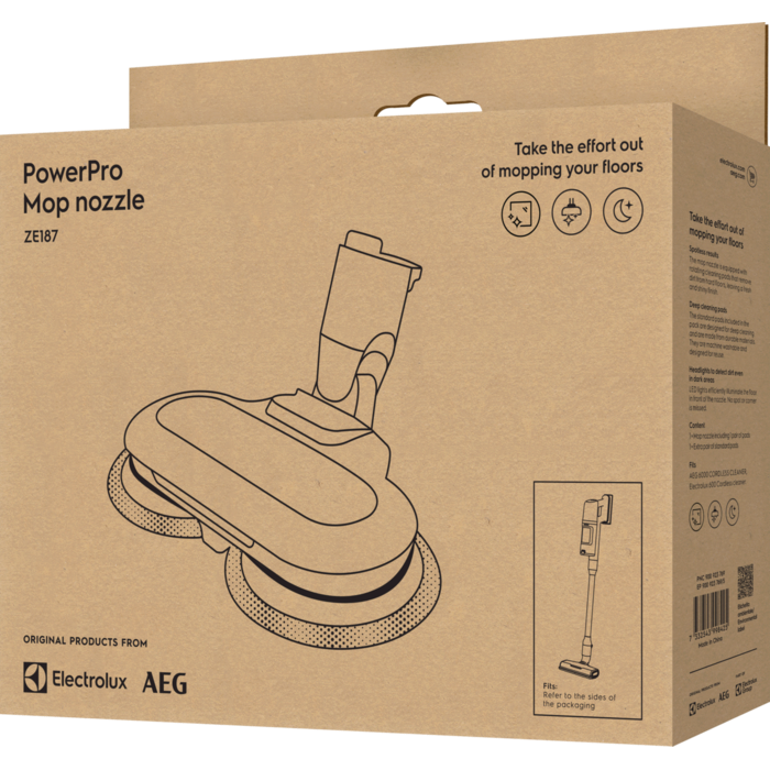 PowerPro moppmunstycke med LED-lampor för 600 Cordless pistol. Utrustat med 2st roterande rengöringsdynor som tar bort smuts från hårda ytor. Standarddynor ingår, utformade för grundlig rengöring och tillverkade av tåligt fibermaterial. Kan tvättas i tvättmaskin och återanvändas.