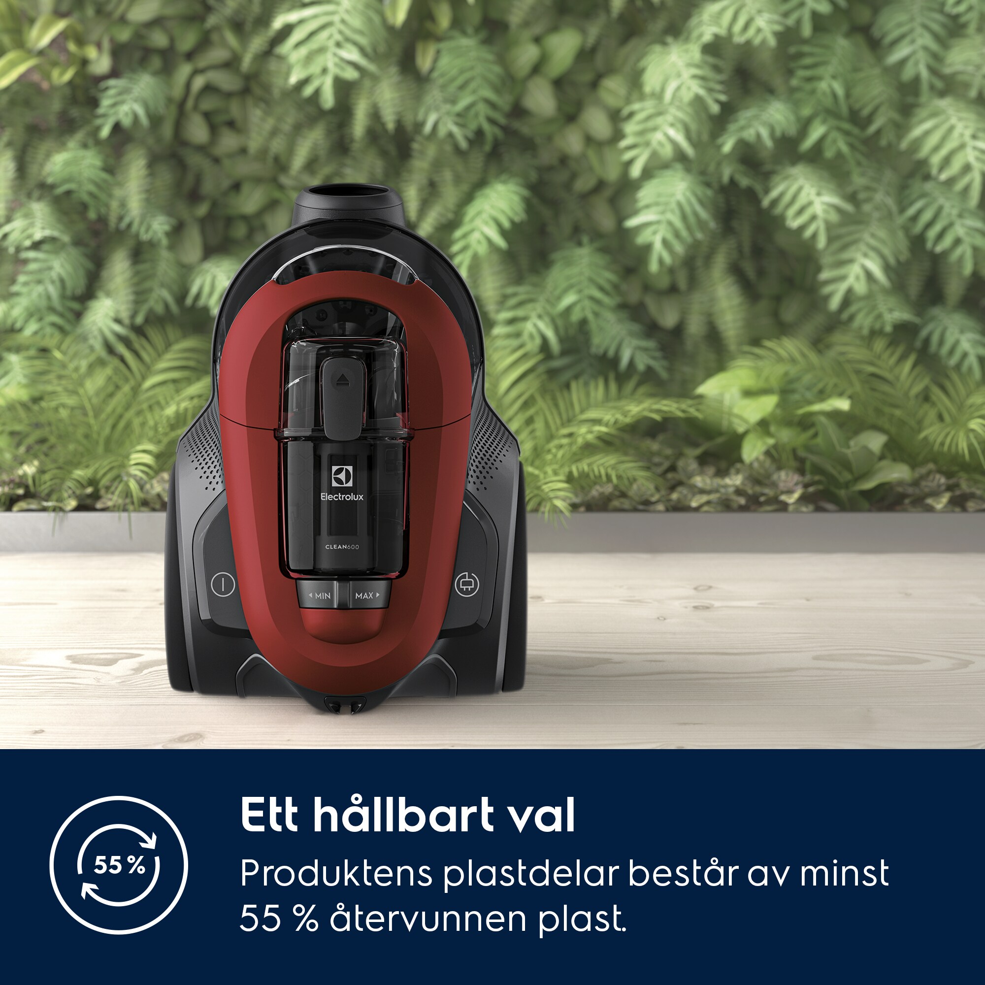CLEAN 600 Green Bagless cleaners innovativa cyklonteknik och ergonomiska formgivning garanterar hög prestanda med effektiv rengöring och snabb och enkel tömning. Denna effektiva dammsugare gör att du aldrig behöver kompromissa med städresultatet – och den är tillverkad av plast som till hälften kommer från återvunnet material.