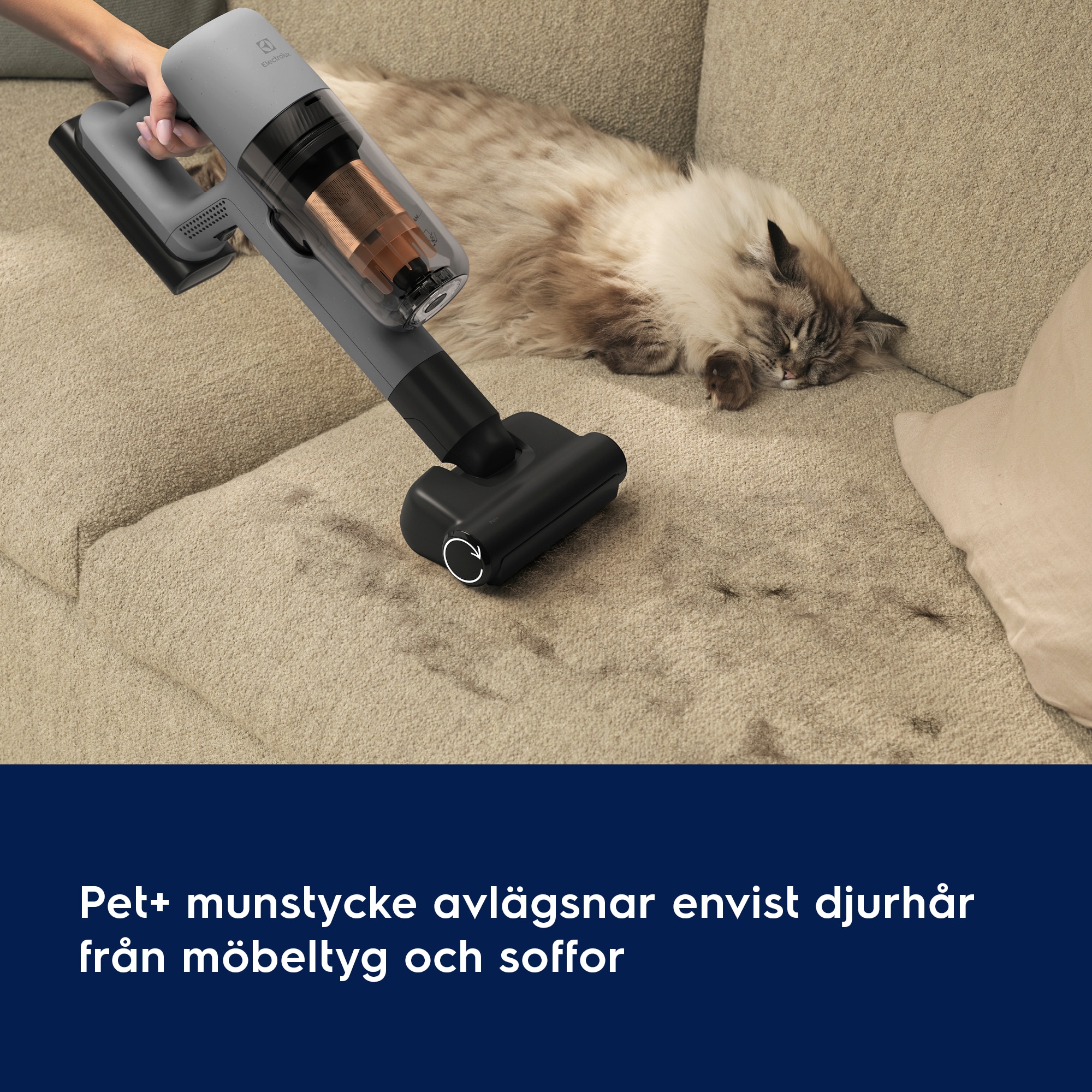 Den kraftfulla men lätta skaftdammsugaren 700 är en utmärkt lösning för dig som bor med husdjur. Med stark sugeffekt och Pet+ munstycket avlägsnas djurhår enkelt från alla ytor – både i hemmet och i bilen.