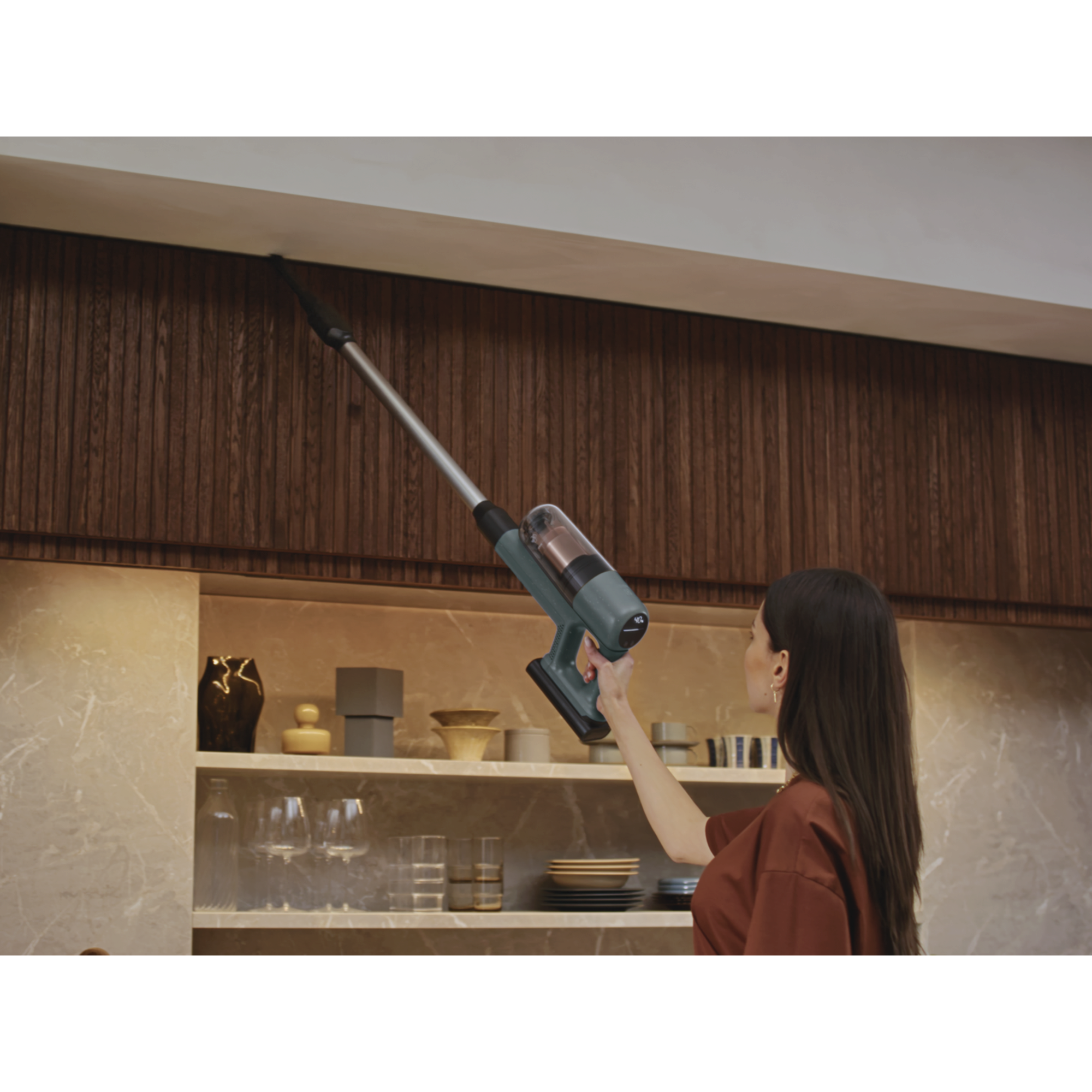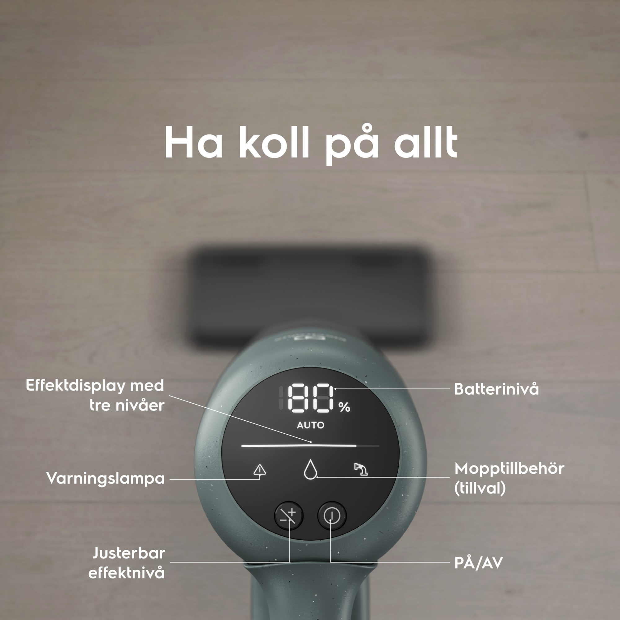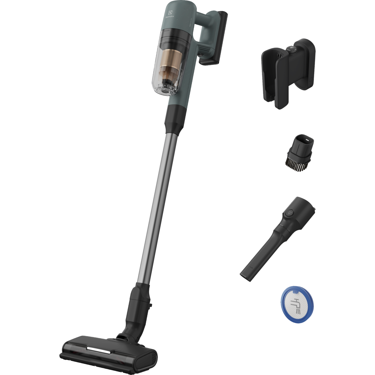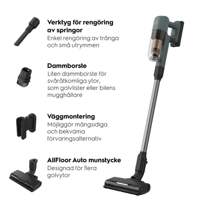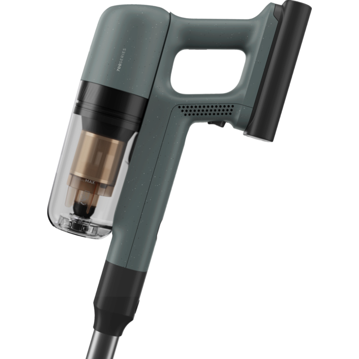 700 Cordless cleaner med upp till 40 min drifttid på lägsta effekt, (endast handenhet upp till 50 min.) Väggfäste med laddkalbel, Digital display med %- indikator för batterinivå, Auto funktion. PowerPro Multi floor munstycke. Ocean Green