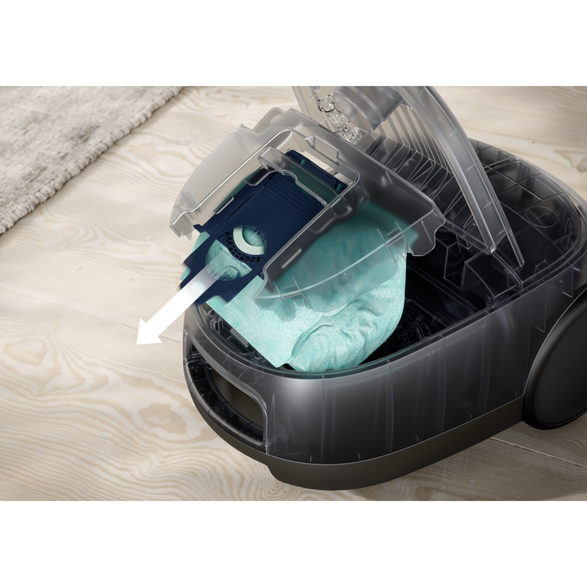 Hygienic 600 dammsugare kombinerar ett munstycke med automatiskt golvläge och ett specialfilter som fångar upp småpartiklar för synligt resultat.