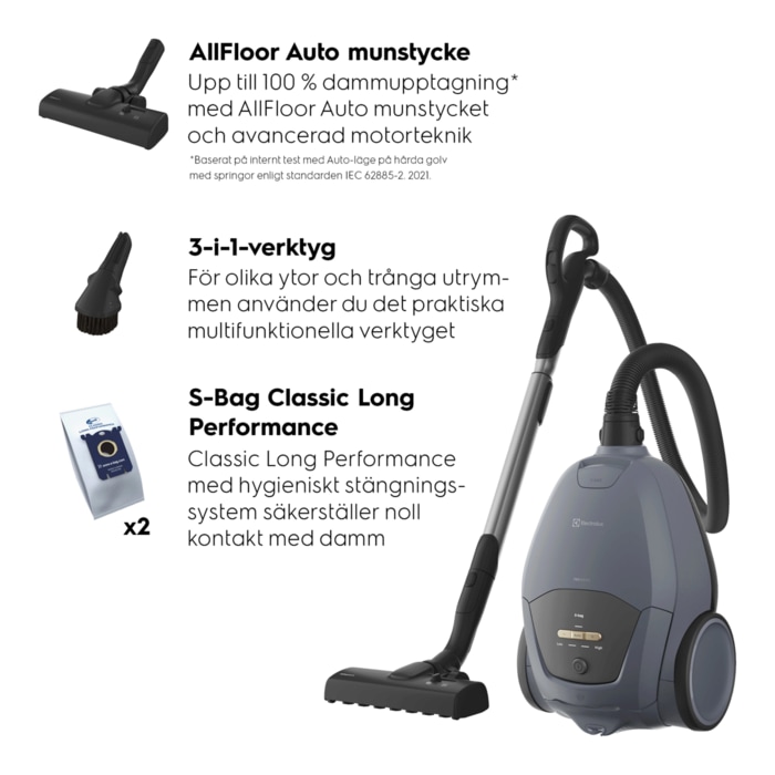 700 Silent dammsugare med påse rengör både kraftfullt och tyst. Ett effektivt luftflödessystem, Auto-läge och avancerad HEPA-filtrering arbetar tillsammans för att optimera prestandan och ge exceptionella resultat.