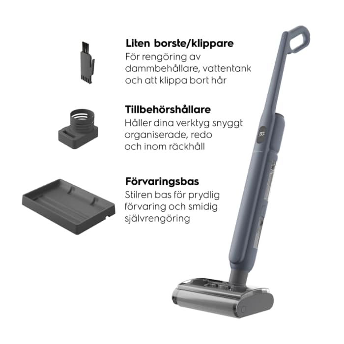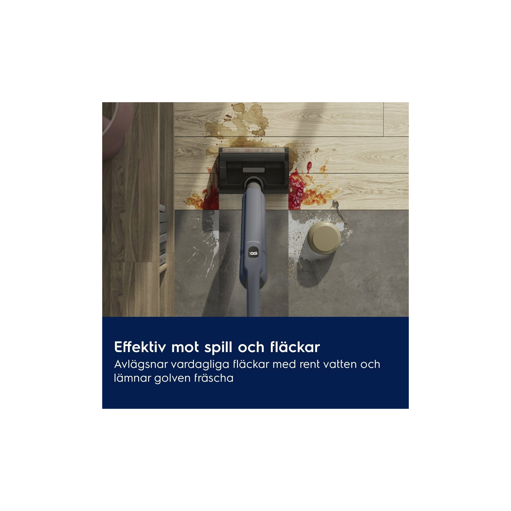 *Baserat på interna tester av fläckborttagning på hårda, plana golv, jämfört med en traditionell mopp och hink, i enlighet med standarden IEC 62885-6.