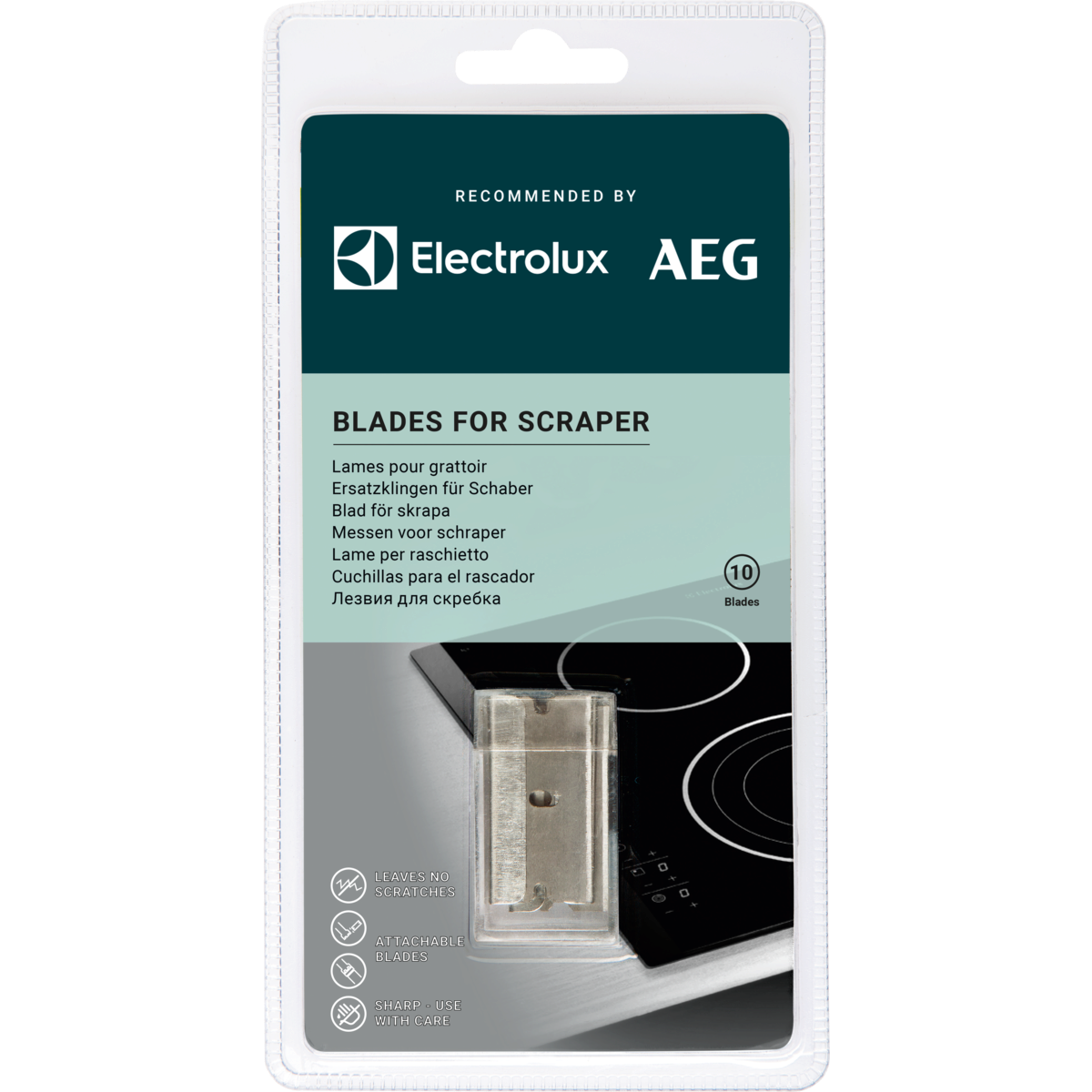 Electrolux No-scratch blad for skrapa till keramik- och induktionshällar. Enkla att byta och effektiva för att skrapa bort fastbrända matrester eller spill. Innehåller 10st blad.