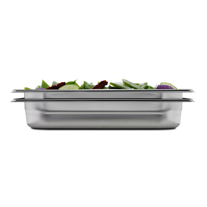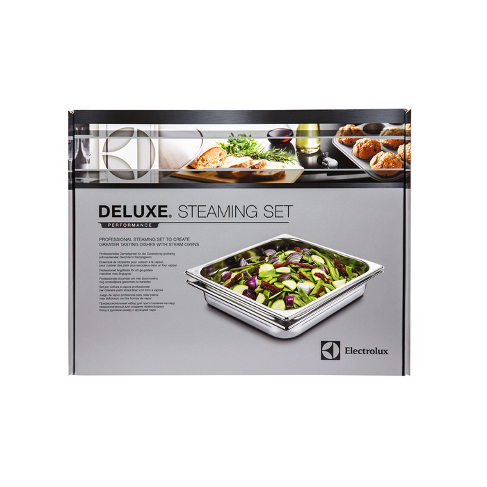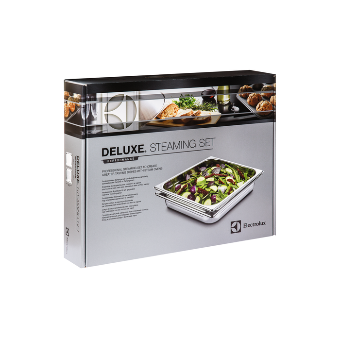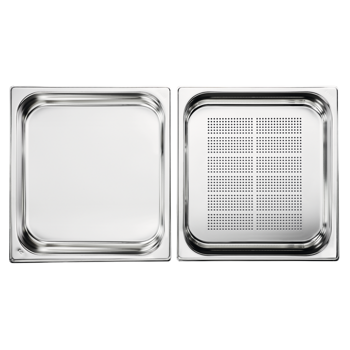 Electrolux stort professionellt ångset för ugnar med full ånga. Hög kvalitet i rostfritt stål för ångmatlagning. Innehåll: x1 perforerat tråg samt x1 helgjutet tråg att användas separat eller tillsammans. H: 55 mm / B: 325 mm / D: 354 mm