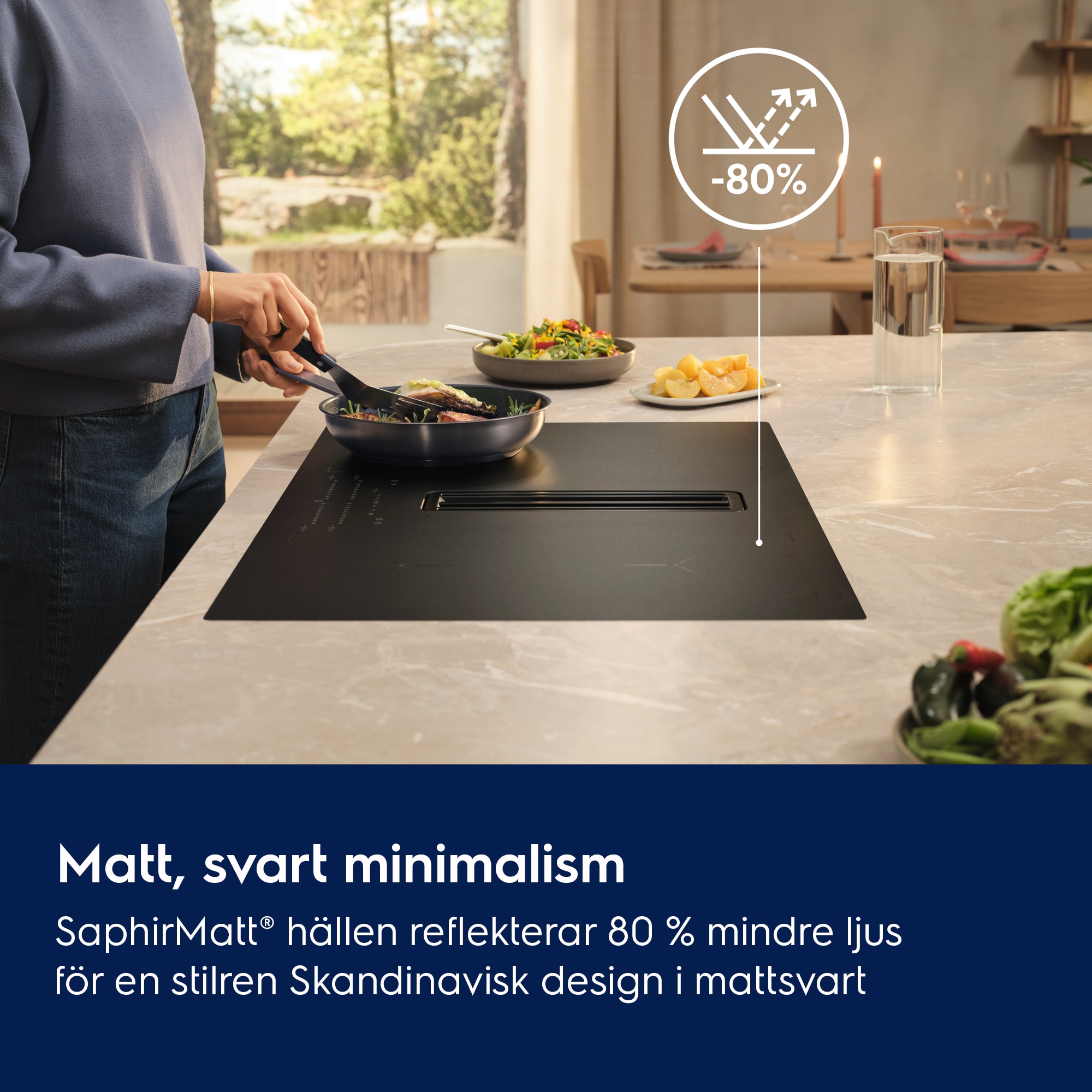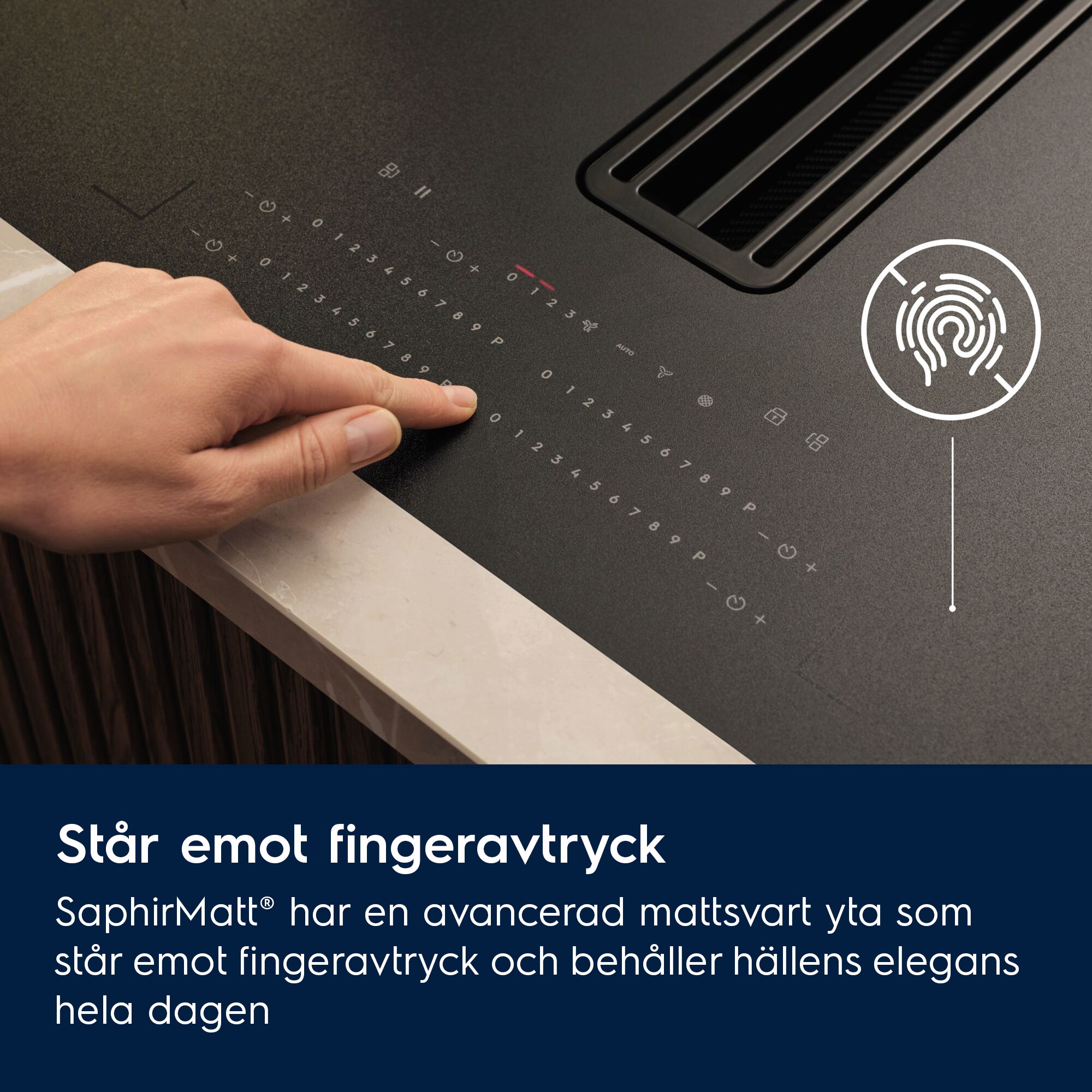Induktionshäll med inbyggd fläkt 80 cm SaphirMatt® med reptålig yta