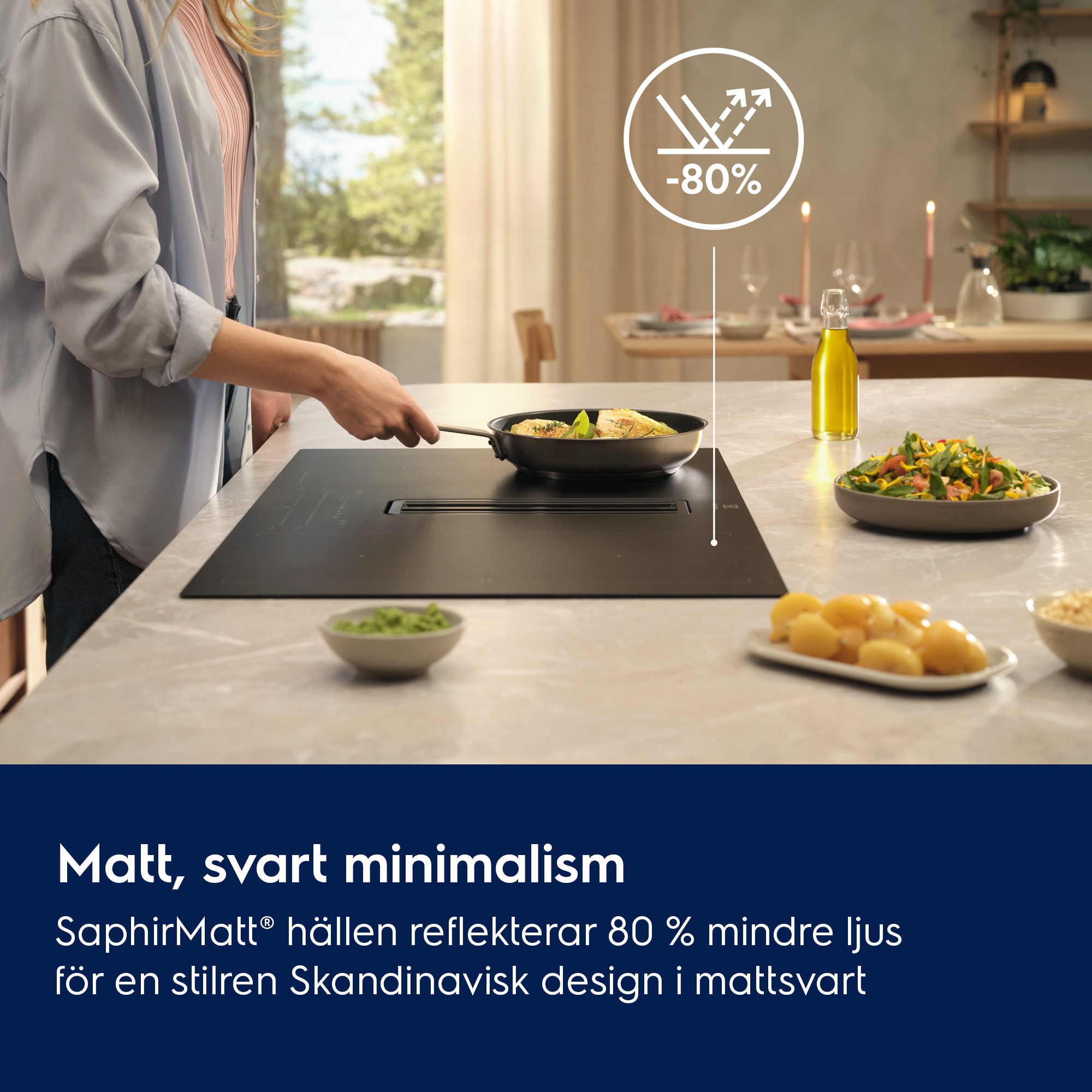 Induktionshäll med inbyggd fläkt 80 cm SaphirMatt® med reptålig yta
