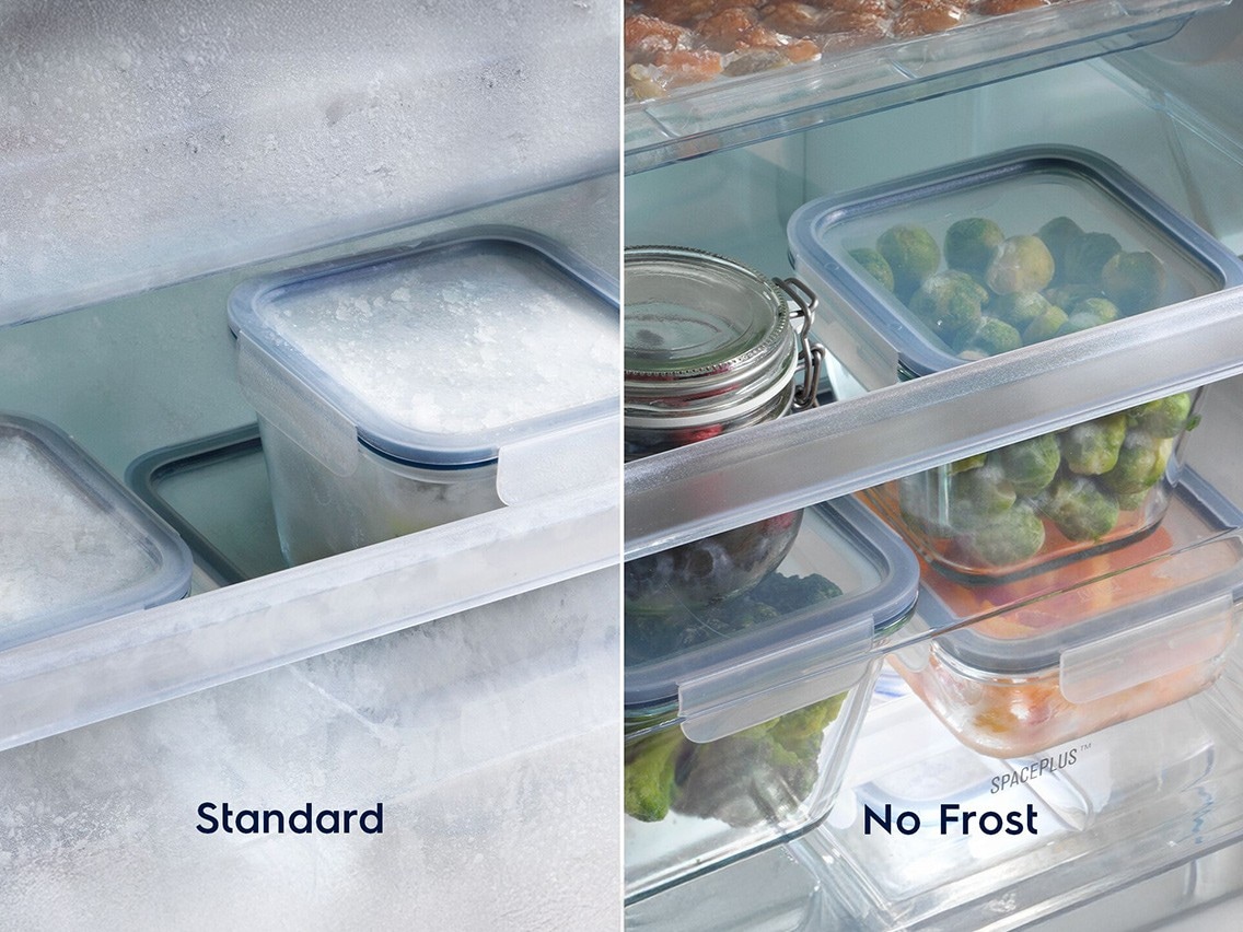 - Funktion: Teknologin cirkulerar torr luft och avlägsnar fukt, vilket förhindrar isbildning på både väggar och mat.