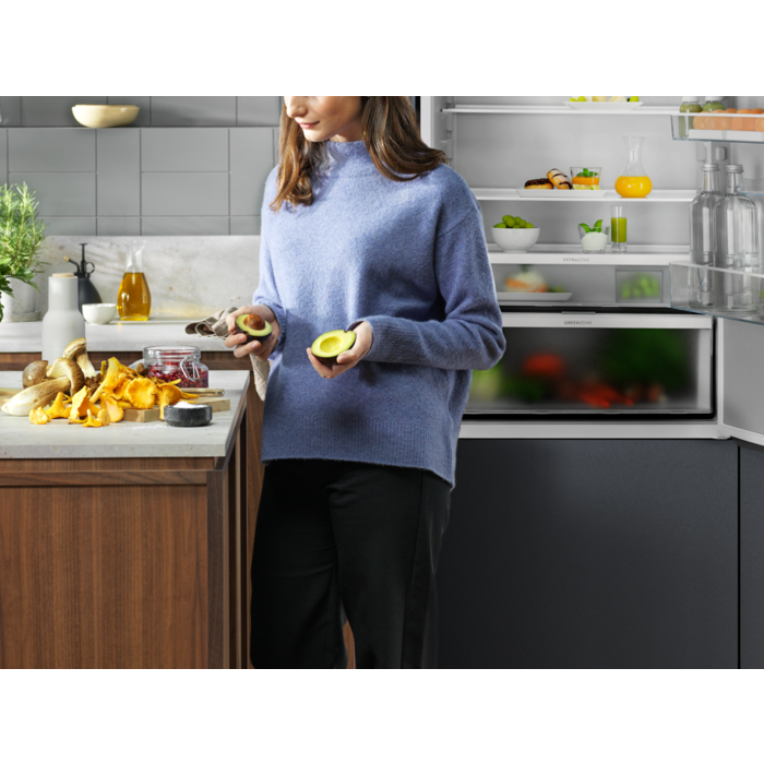 700 GreenZone Kyl-frys har en dedikerad sluten låda med separat klimatfunktion där luftfuktigheten behålls på ideal nivå. Detta bevarar upp till 95 % av vitaminerna efter 11 dagar genom att skydda grönsakerna med den rätta mängden luftfuktighet.*
