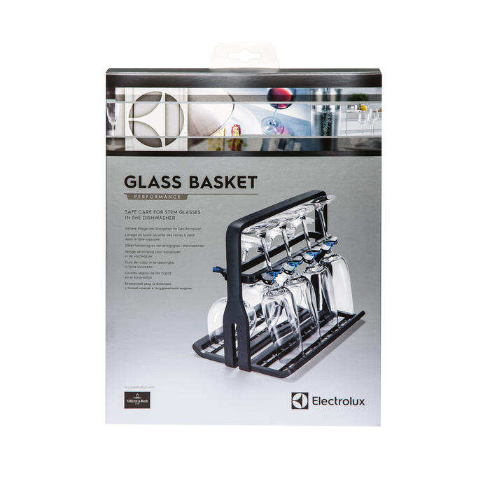 Electrolux Glaskorg för 60 cm och 45 cm diskmaskiner med fällbara tallrikshållare. Håller upp till 8 vinglas som står perfekt på plats utan att skadas och den kan vikas ihop plant för enkel förvaring när den inte används. Innehåller 1st.