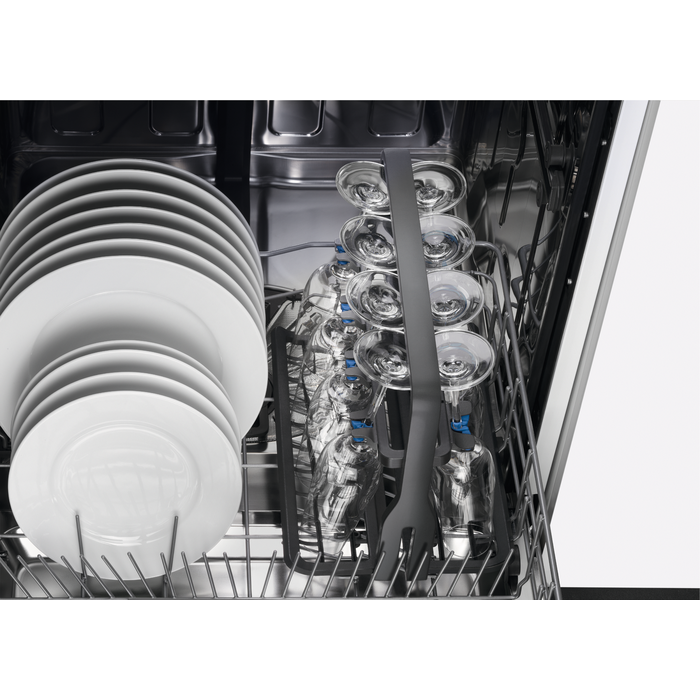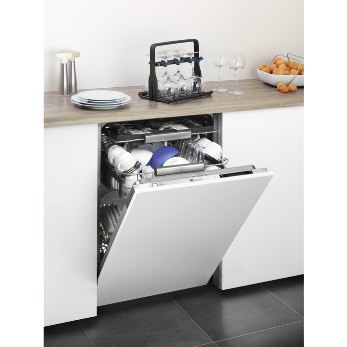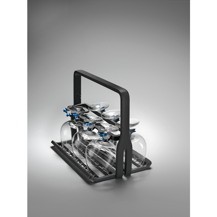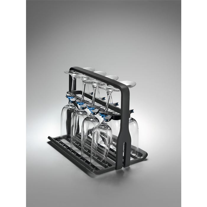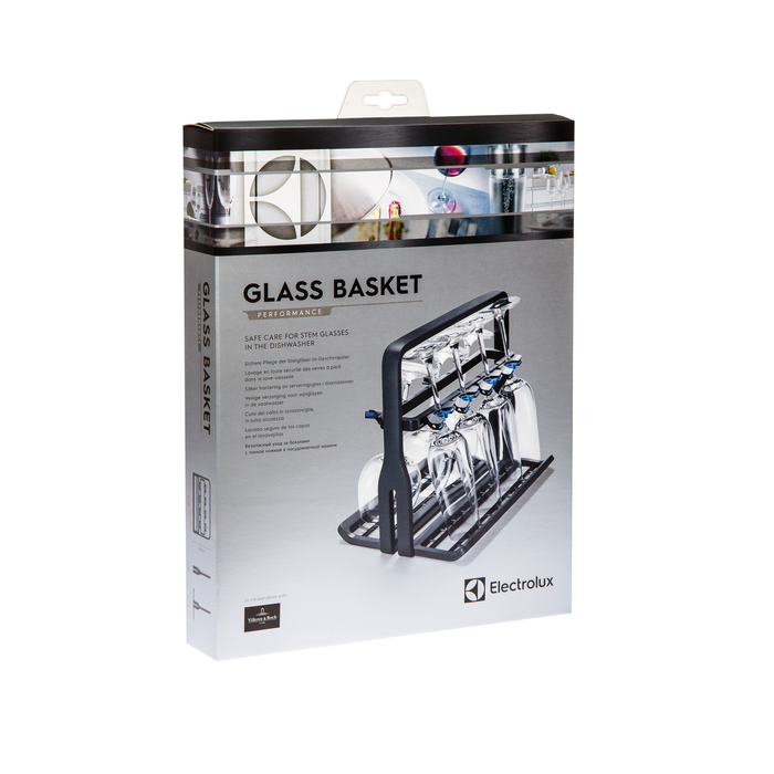 Electrolux Glaskorg för 60 cm och 45 cm diskmaskiner med fällbara tallrikshållare. Håller upp till 8 vinglas som står perfekt på plats utan att skadas och den kan vikas ihop plant för enkel förvaring när den inte används. Innehåller 1st.