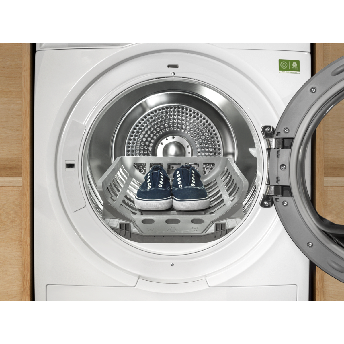 Torkstället torkar ömtåliga plagg skonsamt – utan torktumling. Placera stället i trumman för att varsamt torka till exempel ulltröjor, silkesblusar eller mjukisdjur.
