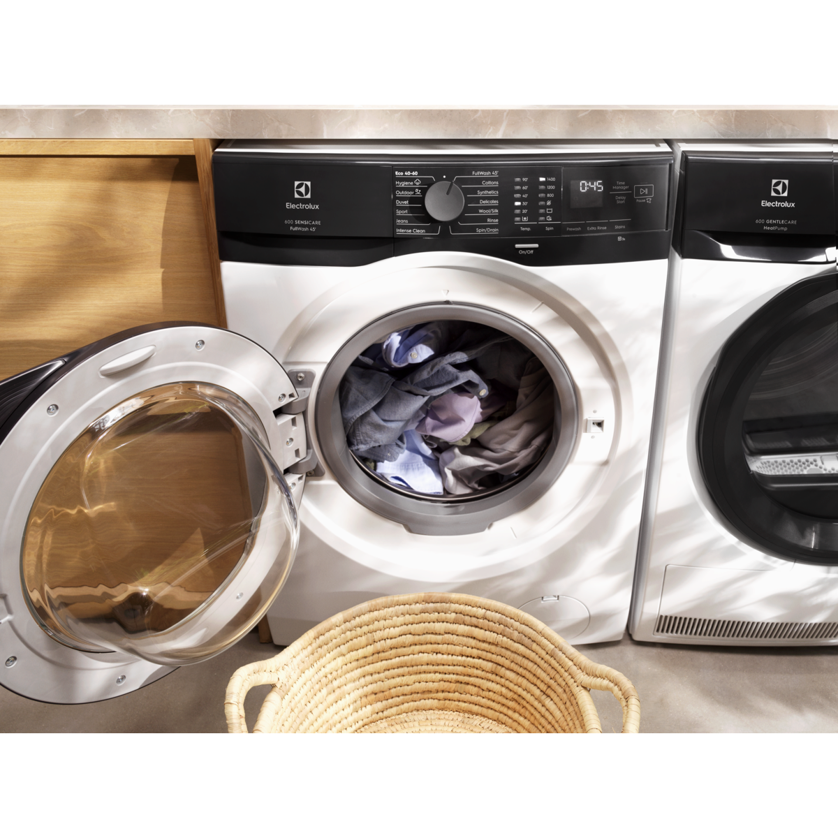 Serien 600 FullWash erbjuder ett snabbt program även för fullastade maskiner och gör det möjligt att förkorta andra program med Time Manager® så att de passar ditt schema. Avancerad tvättmängdsavkänning minskar tid, vatten- och energiförbrukning. Hygienprogrammet avlägsnar bakterier.