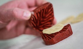 Kavla ut smördegen så den är 2 mm tjock. Skär ut blad med en räfflad rund skärare - markera venerna på varje blad med en bladpressform eller baksidan på en liten kniv. Lägg bladen så de överlappar varandra runt pajformens sidor.
