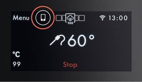 Du kan alltid hålla koll på din matlagning genom appen. För att styra ugnen via din mobil eller surfplatta måste du aktivera fjärrstyrning från ugnen. Tryck helt enkelt på mobilikonen i ugnens display (stäng av fjärrstyrningen om du skulle vilja använda kontrollpanelen på ugnen istället).