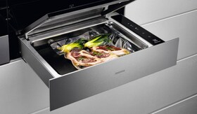 Kompakt och högpresterande vakuumförpackare i exklusiv design. Förpacka dina livsmedel och tillaga sedan i din Steam Pro Smart-ugn.