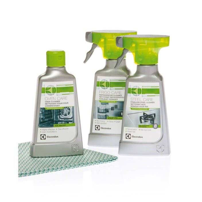 Underhållsset för kökEn komplett underhållsset för ditt kök som inkluderar Steel Care för yttre rostfria ytor, Oven Care för rengöring av ugnen och Frigo Care för att neutralisera dofter i kylskåpet.