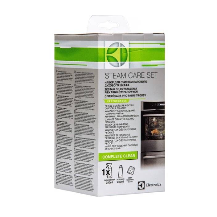 Rengöringsset för ångugnDetta set är perfekt för din ångugn och innehåller Steam Care-avkalkaren och rengöringsmedlet Oven Care.