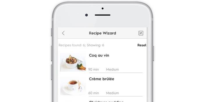 Genom My Electrolux Kitchen-appen hittar du en mängd goda recept som du kan skicka direkt till ugnen. Bläddra genom receptguiden i appen och välj "Skicka till ugnen" vid receptet du vill tillaga. Ugnen startar automatiskt rätt program med rätt inställningar.