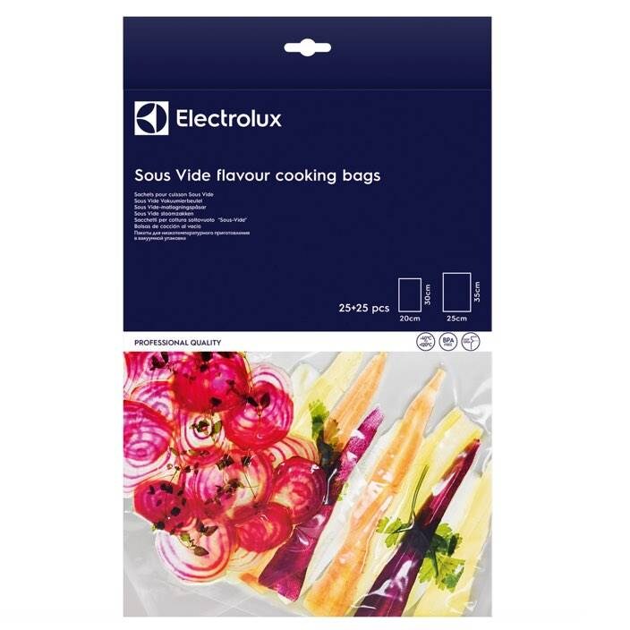 De vakuumförseglade påsarna saktar ner oxideringen och bevarar smaken. Ingredienser fylls med smak genom att kokas i en fuktig, självbräserande miljö. Temperaturen hålls stadig inom ett halvgrads intervall. Denna precision ger dig läckra smaker och resultat som du kan återskapa gång på gång. Du kan köpa SousVide-påsar direkt från Electrolux.