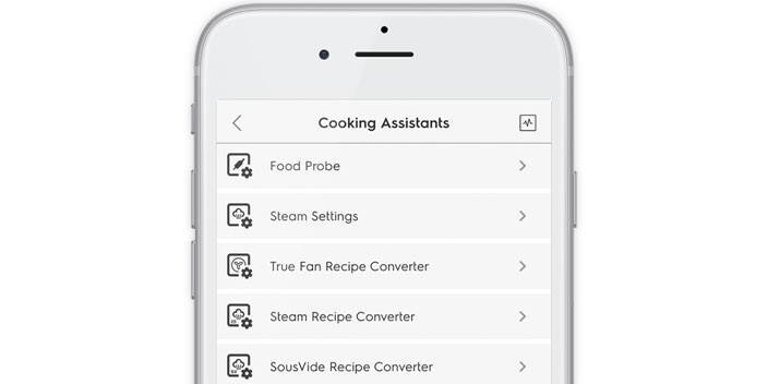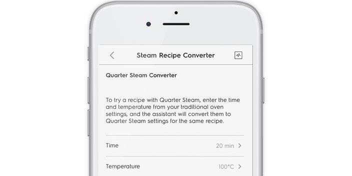 My Electrolux Kitchen-appen har många funktioner som hjälper dig när du lagar mat med ånga. Fjärrstyrningen kan användas som vanligt, men appen kan också hjälpa till med specifika ånginställningar och att konvertera vanliga recept till ångrecept.