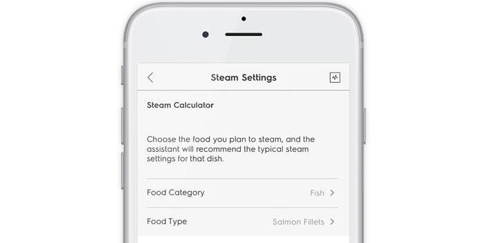 ÅnginställningarVet du hur man ångar en viss ingrediens? Gå till ånginställningsassistenten – välj helt enkelt den ingrediens du vill ånga och assistenten kommer att föreslå en inställning åt dig.